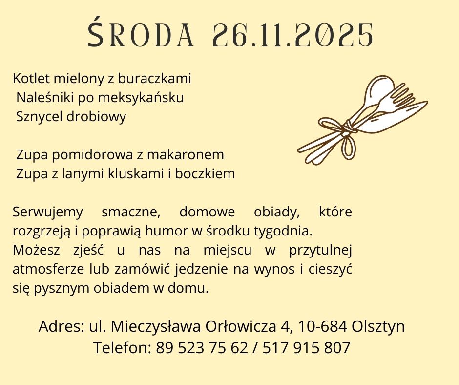 Obiady w Diner Bistro Olsztyn 26.11.2025