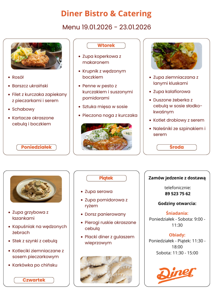 Menu Diner Bistro & Catering – Poniedziałek 19.01.2026