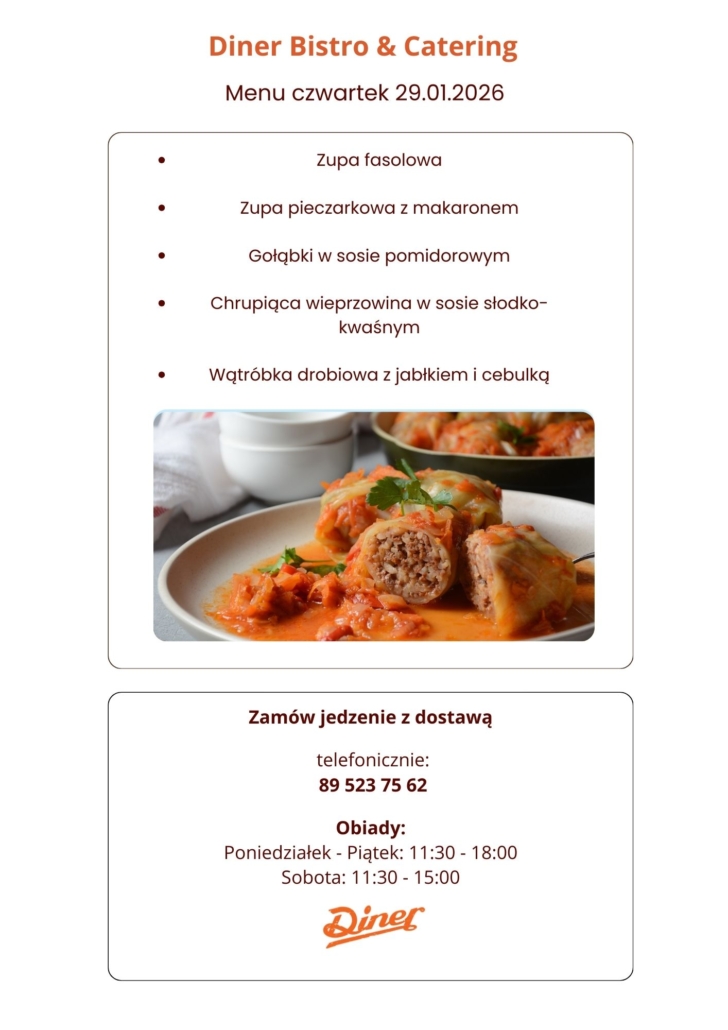 Menu Diner Bistro & Catering – czwartek 29.01.2026