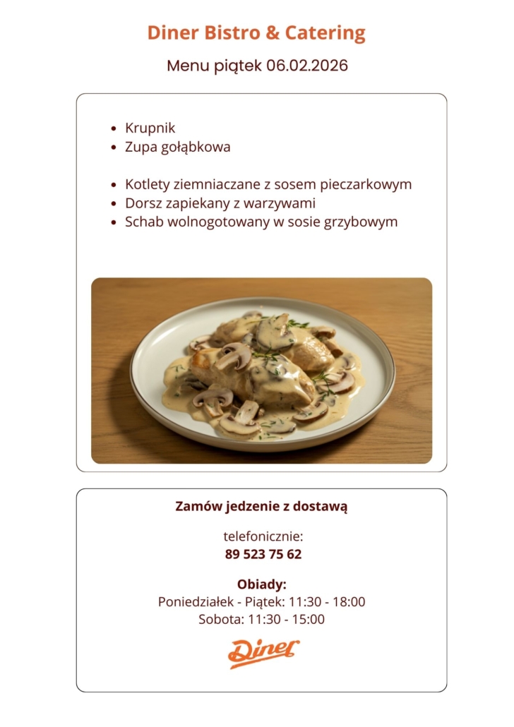 Menu DZIENNE Diner Bistro & Catering – piątek 06.02.2026